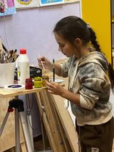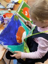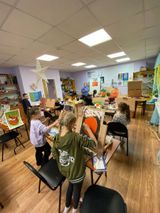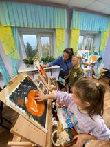 Занятие началось с того, что ребята подготовили рабочие места художника: расставили мольберты, подготовили краски, кисти и закрепили бумагу на планшетах.